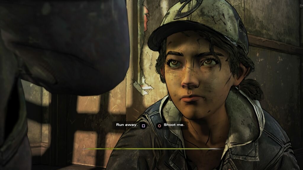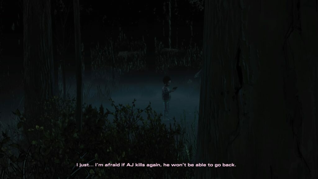As previously stated, Broken Toys is quite possibly the most intense episode of The Walking Dead, ever. In fact, this entire season holds an unfathomable amount of anxiety over the player’s head in the form of AJ. He watches Clementine’s every move, and his reactions can completely obliterate your soul. What’s worse is the existential crises he so frequently has, in which he asks Clementine questions like “Am I a murderer?” and “Are you going to die?”. AJ being an influential, omnipresent follower is vastly different than young Clementine was to Lee. Whereas she saw what he did, and learned how to be strong from him, the world simply wasn’t as difficult as it is now though ultimately, she learned lessons through his teachings, indirect or otherwise. But with older Clementine finding herself in tough, often chaotic situations alongside young AJ, she struggles to keep her cool and not be reckless, for fear of teaching him the wrong things.